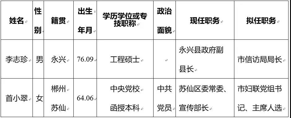 介绍郴州市组织部发布的人事任命背景及目的。