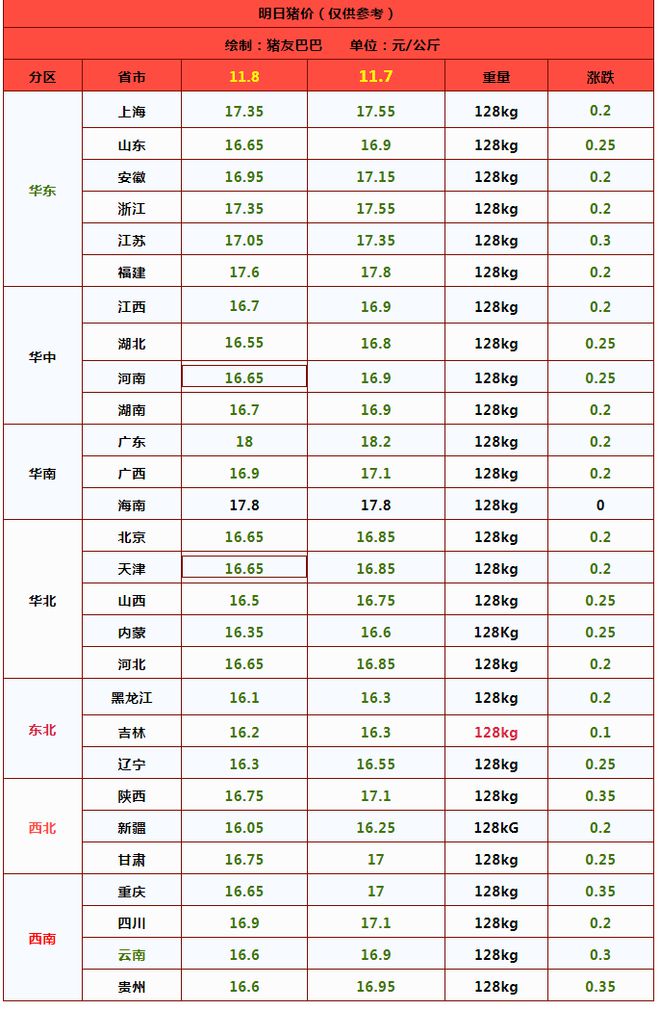 在11月份,由于节日消费需求的拉动,如中秋节、国庆节等,猪肉消费需求增加,同时养殖户压栏惜售心理增强,供应略显紧张,共同推动了猪价持续上涨,据行业数据显示,全国大部分地区猪价均有所上涨,涨幅在合理范围内,表明当前猪价走势较为稳健,市场供需关系逐渐趋于平衡。